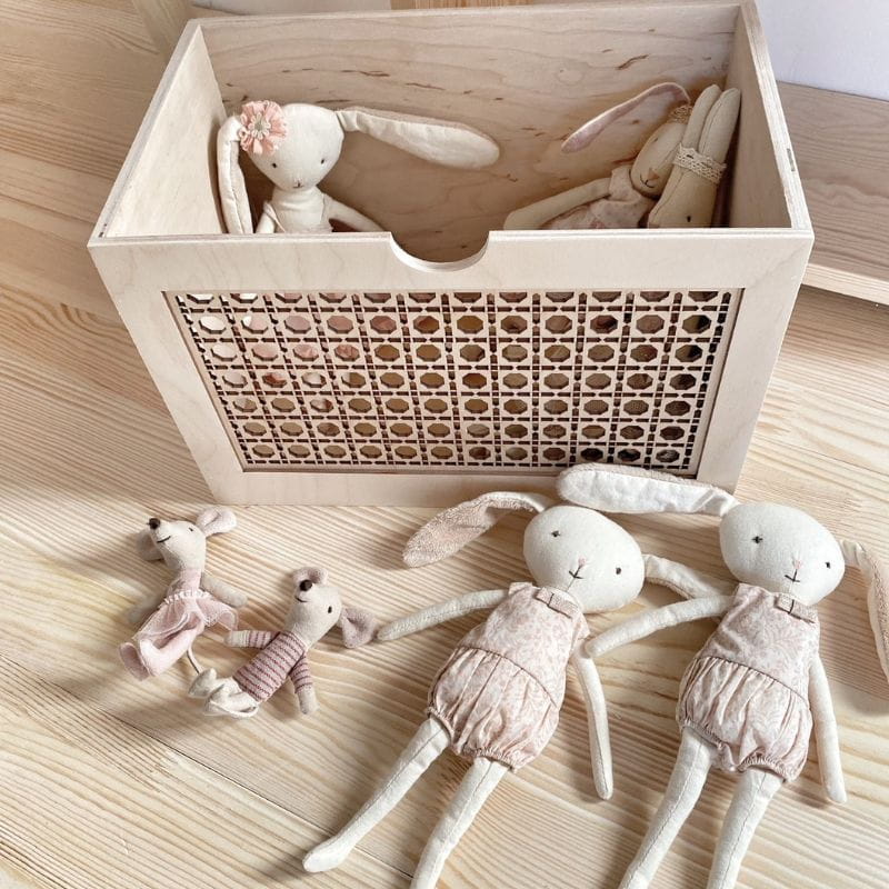 Children's bookcase entirely made of our Polish pine wood. Drawers with rattan imitation made of plywood.