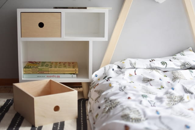 The bedside table for children is equipped with two drawers in which a toddler can store his treasures. You can paint boxes in the color of your choice, which will make it match any room and style.