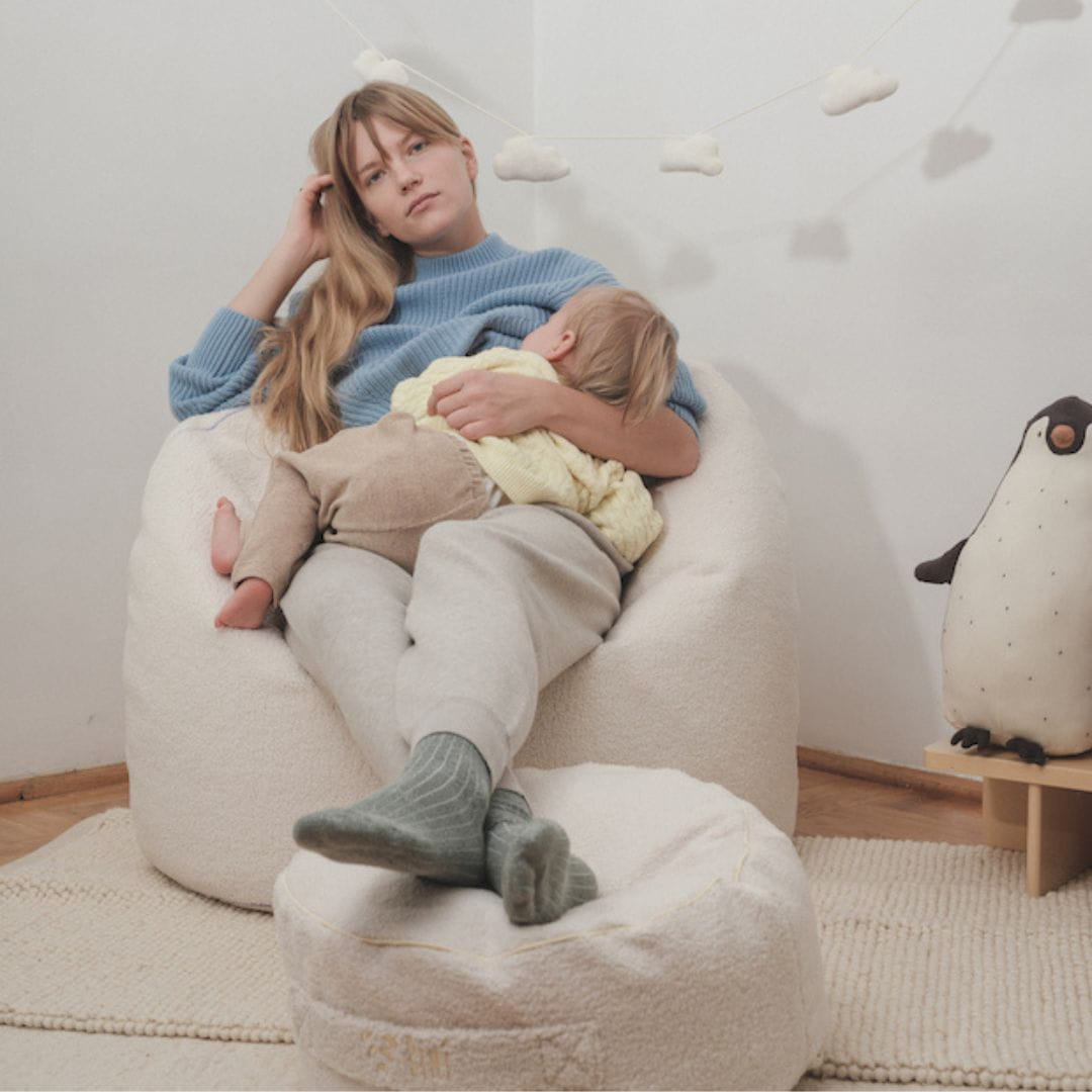 Bini in size S is perfect as a footstool for the largest pouffe in size L. It is a perfect set for a child and a parent :)