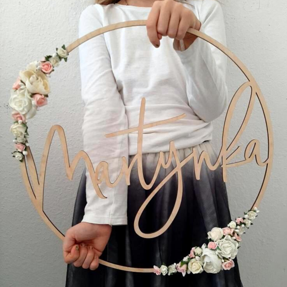 The circle with a name for a girl was designed and produced in Poland. It is cut from 4mm birch plywood and then sanded.