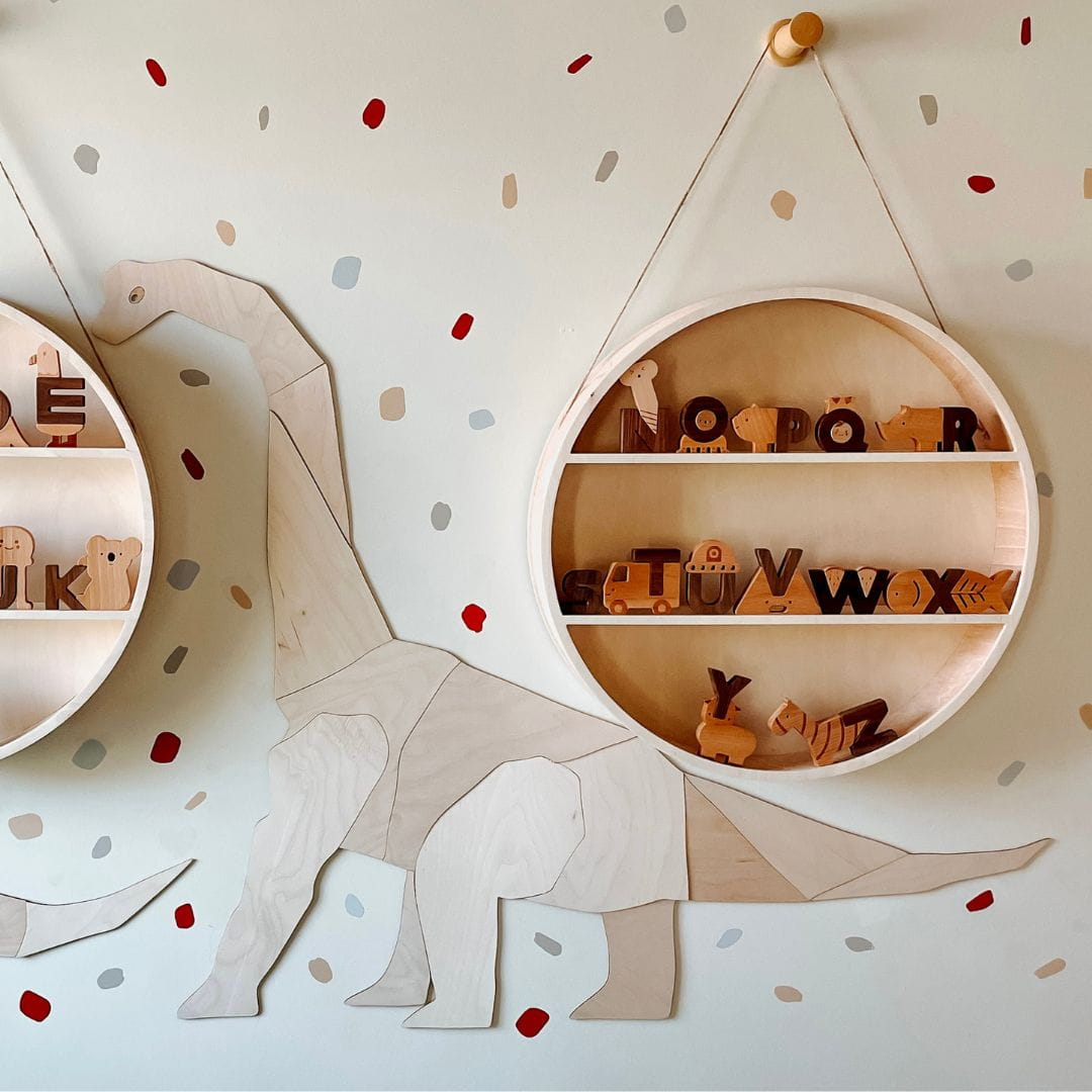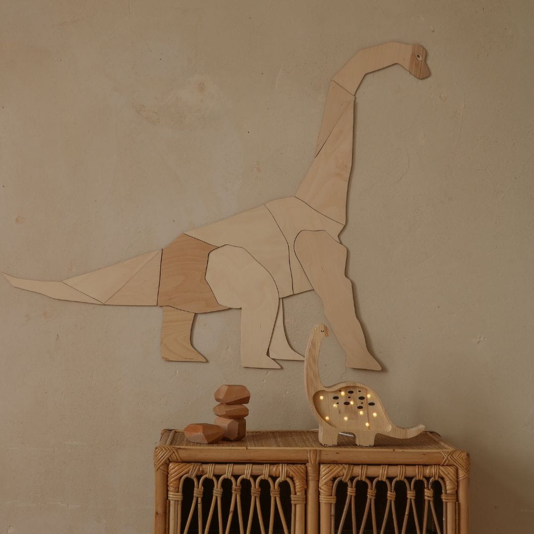 The Diplodocus dinosaur is an origami wall decoration entirely made of hardwood plywood. The elements are arranged like puzzles, great fun for every child! Every toddler can handle it :)