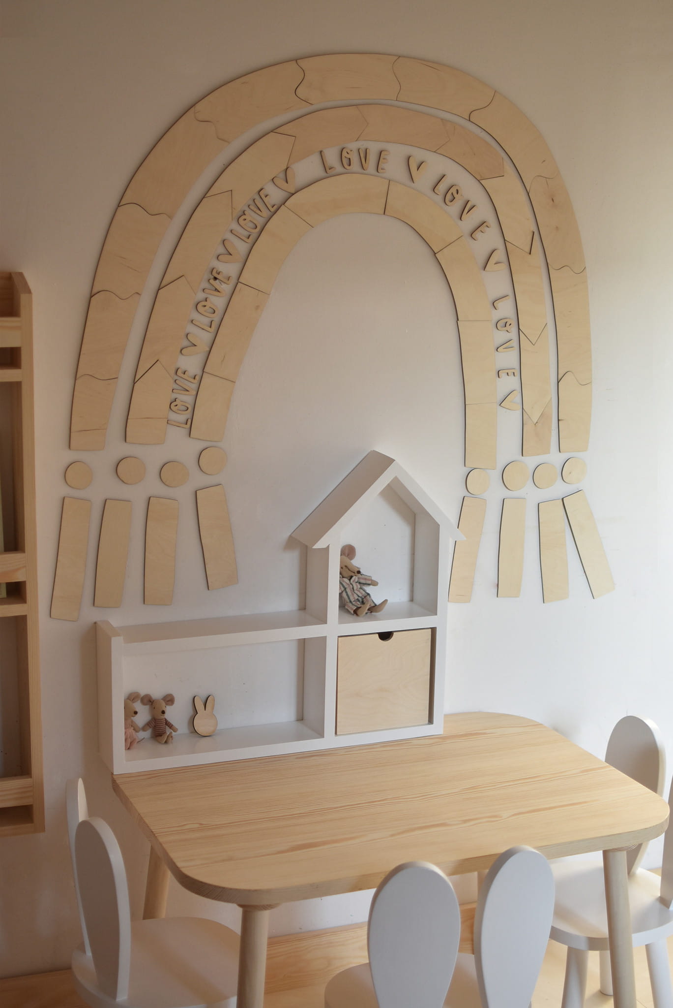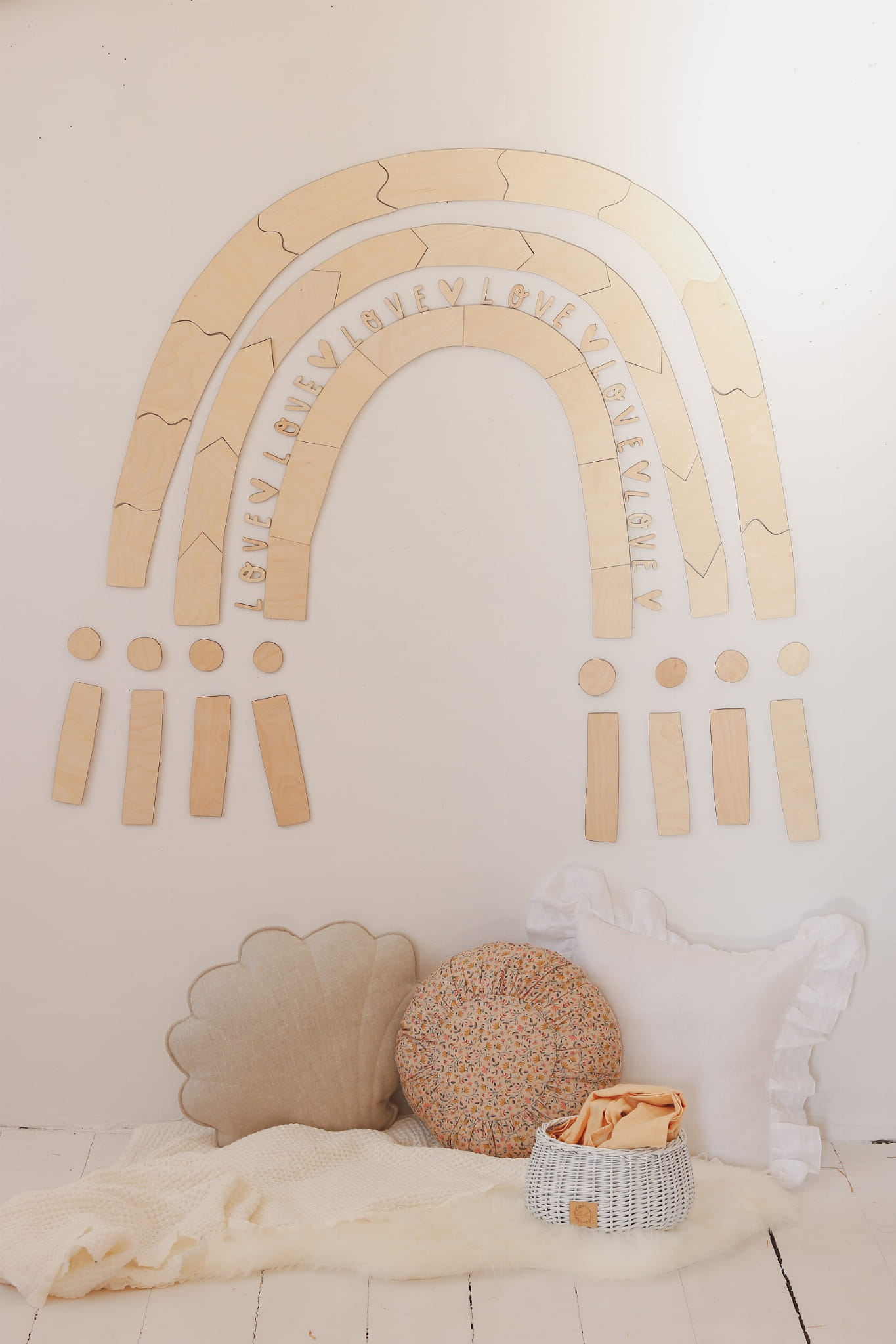 Rainbow wall decoration is a proposal of an extraordinary, wooden decoration of a child's room. It will bring a cozy, warm atmosphere to the interior and will certainly be an exceptionally designer decoration.