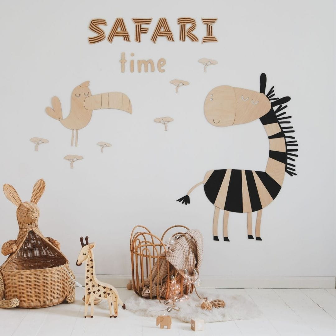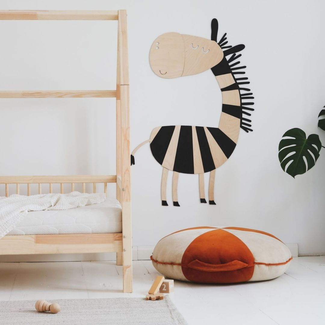 Zebra is made of 3mm birch plywood. Thanks to the natural nature of the animals, you can easily match them to any children's interior.