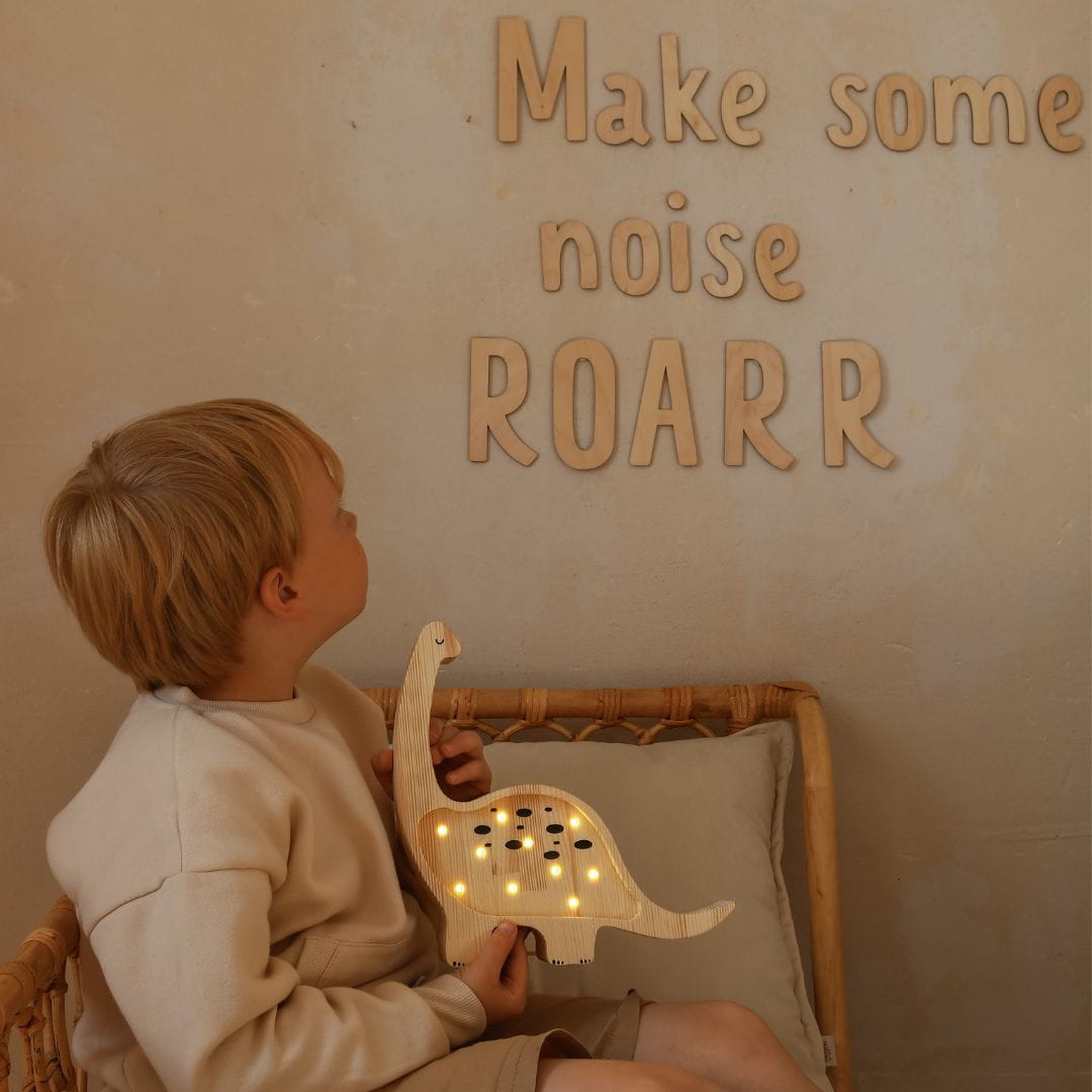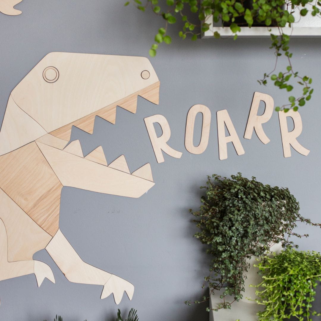 A wooden wall sign for a dinosaur fan - Make Some Noise Roarr