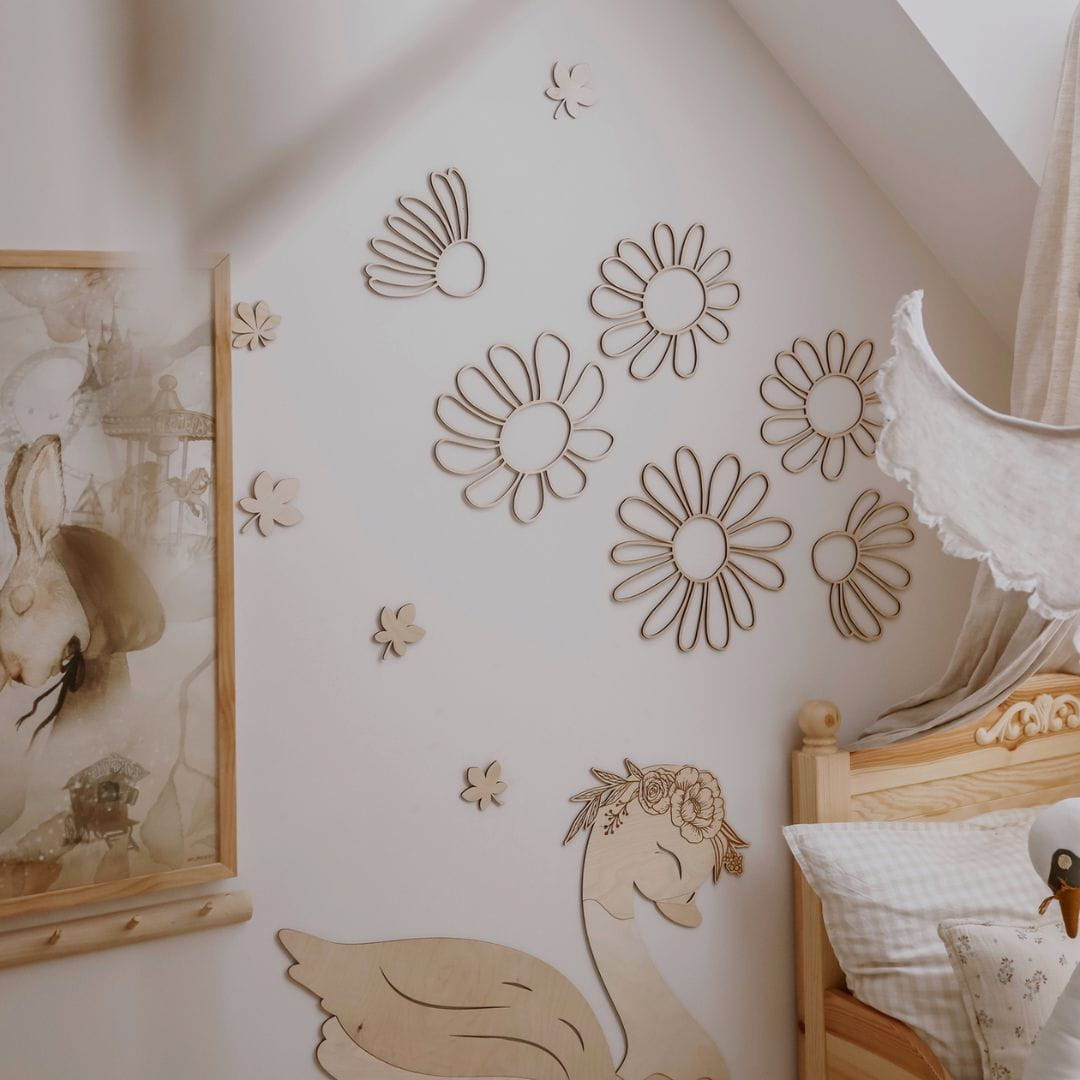 The set includes 6 flowers in various sizes, allowing you to create a distinctive composition in your child’s room. Each flower is precisely cut from delicate plywood in a natural shade and finely sanded, ensuring smooth edges and safety for children.