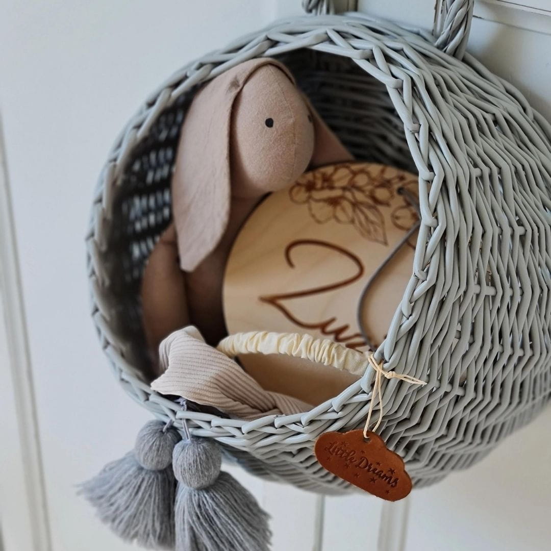 LITTLE DREAMS - ROUND WICKER WALL BASKET GRAY