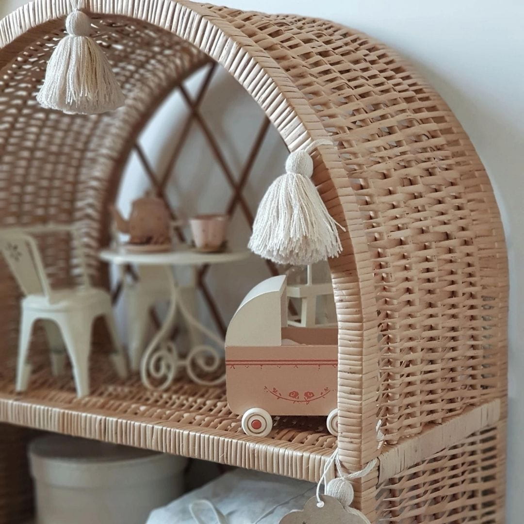The wicker bookcase for the children's room is handmade, with the greatest attention to detail.