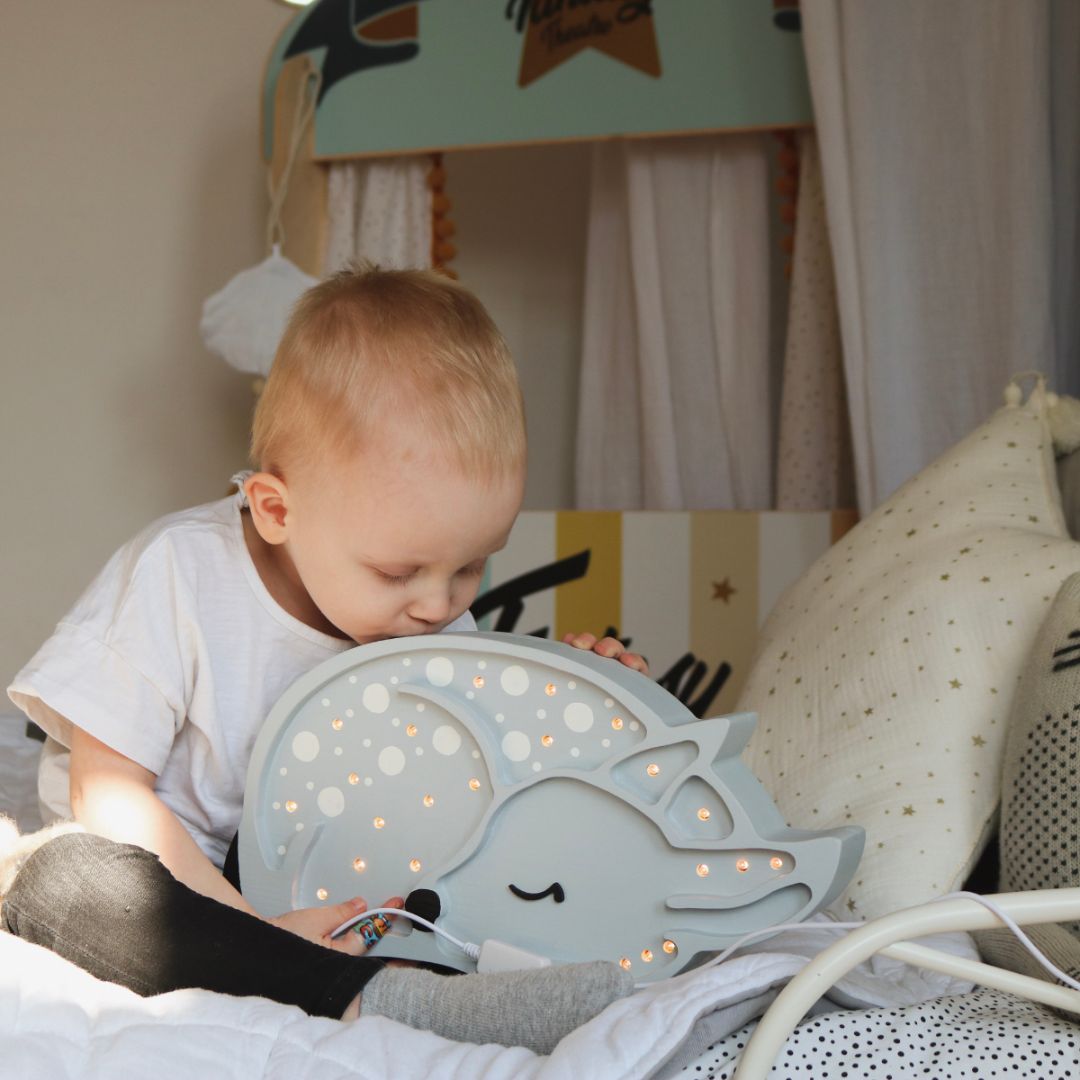 Little Lights lamps are equipped with a dimmer, so you can adjust the light intensity yourself. The switch and dimmer are on the remote control attached to the lamp. Little Lights is not only a beautiful decoration, but above all a functional everyday use item. The brightest lamp mode is enough for bedtime reading, and when dimmed, the lamp light is soft enough to stay on all night.