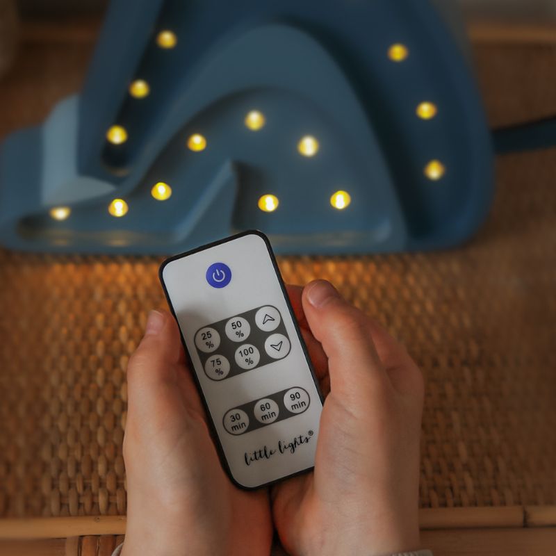 Led lamps for kids are equipped with a dimmer, so you can adjust the light intensity yourself. The switch and dimmer are on the remote control attached to the lamp. Little Lights is not only a beautiful decoration, but above all a functional everyday use item. The brightest lamp mode is enough for bedtime reading, and when dimmed, the lamp light is soft enough to stay on all night.
