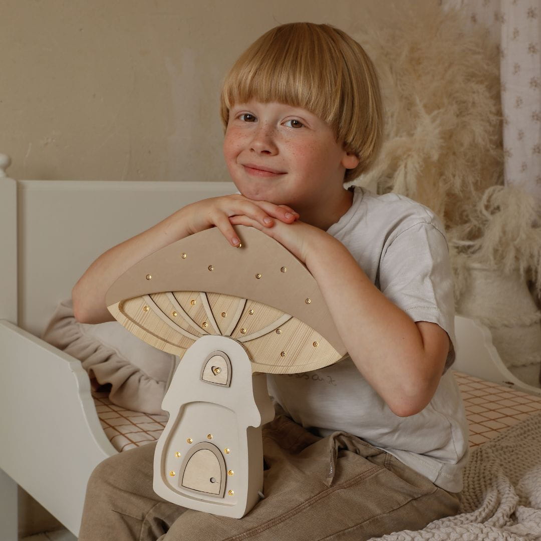 The mushroom-shaped lamp catches the eye and adds a fairy-tale charm to the room. The gentle, subtle light it emits creates a special ambiance that transports children to a world of fantasy.