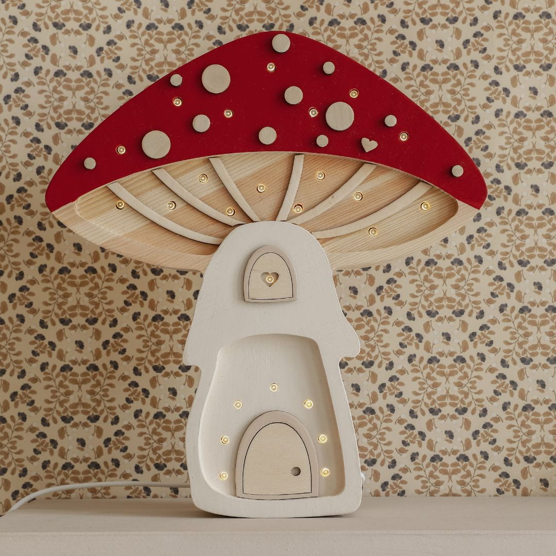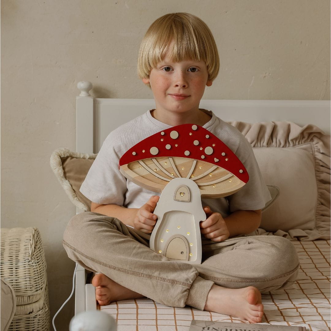 The mushroom-shaped lamp catches the eye and adds a fairy-tale charm to the room. The gentle, subtle light it emits creates a special ambiance that transports children to a world of fantasy.