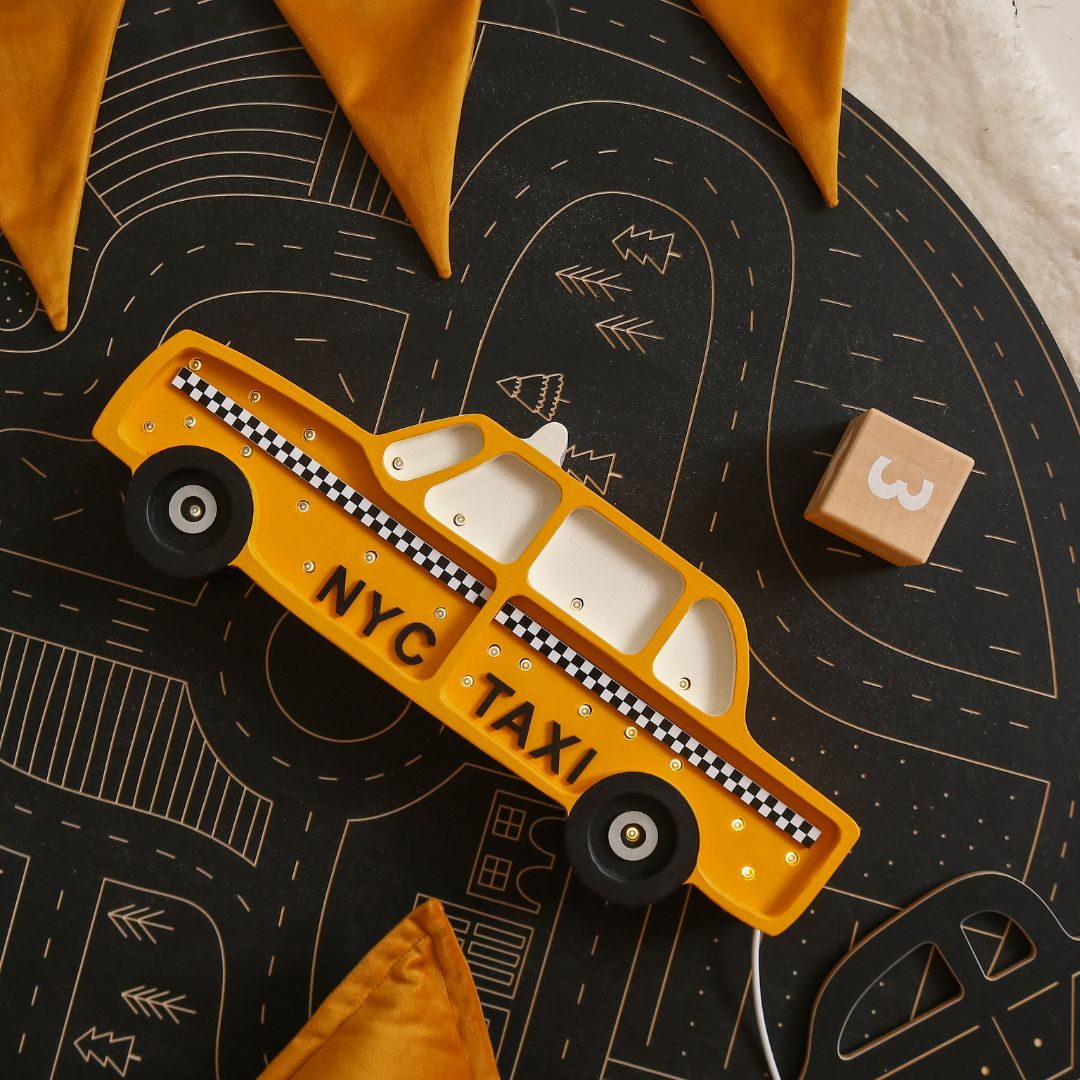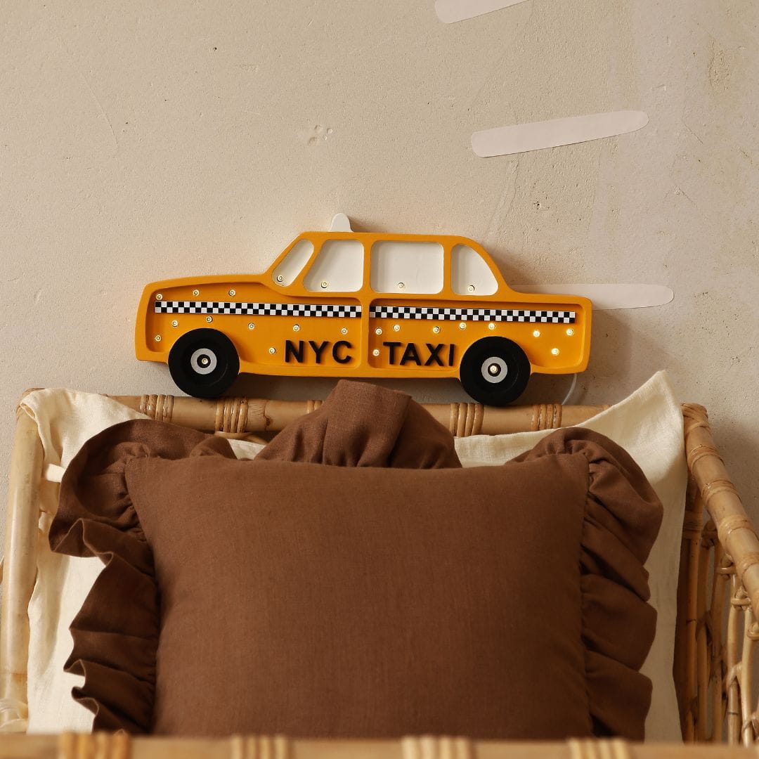 Wooden Little Lights lamp in the shape of NYC taxi will not only illuminate the room, but will also be an interesting room decor. Your little car fan will love sleeping next to this adorable, inspiring lamp.