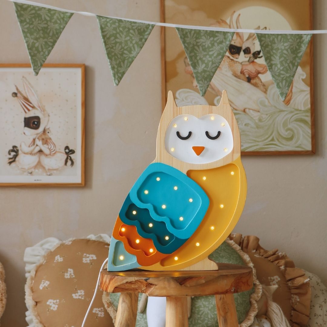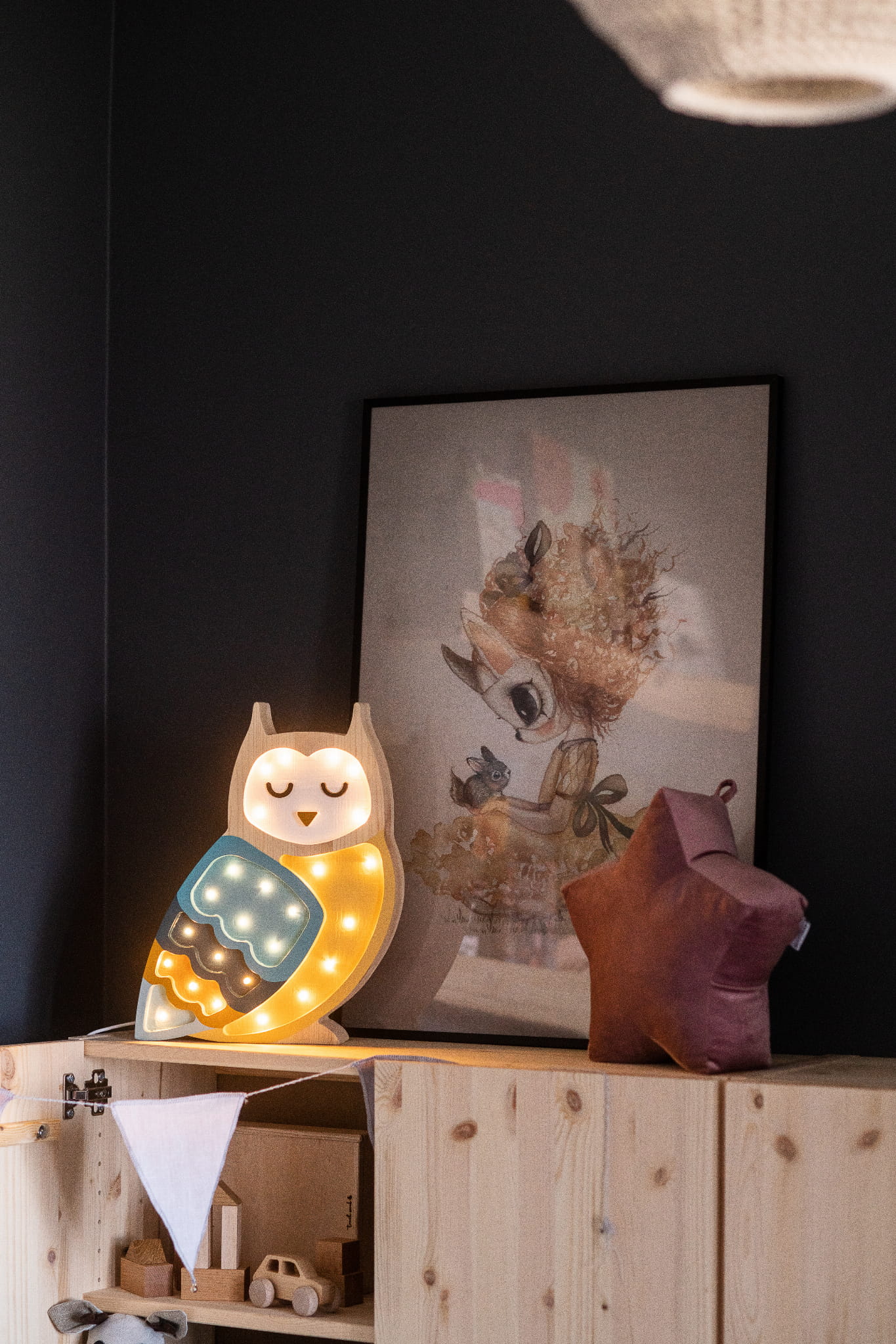 Led Little Lights lamp in the shape of an owl. This wooden lamp will not only illuminate the room, but will also be an interesting room decor.