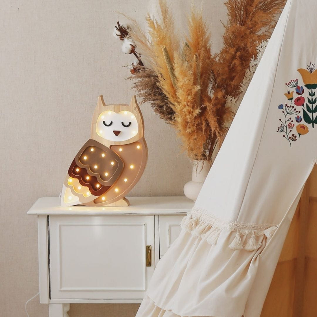 Wooden Little Lights lamp in the shape of an owl. This wooden lamp will not only illuminate the room, but will also be an interesting room decor.
