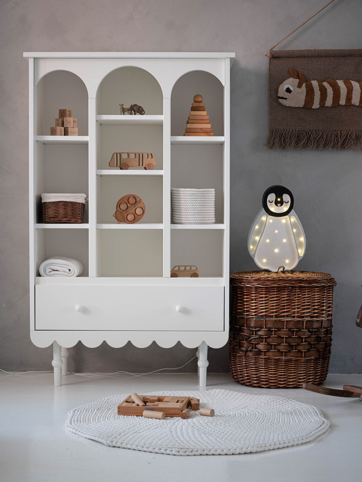 This fashionable pink fellow is Little Lights Penguin Lamp, the perfect cute companion to add the finishing touch to your nursery decor. This wooden lamp will not only illuminate the room, but will also be an interesting room decor. This Little Lights wooden lamp has a dimmer, so you can adjust the light intensity.