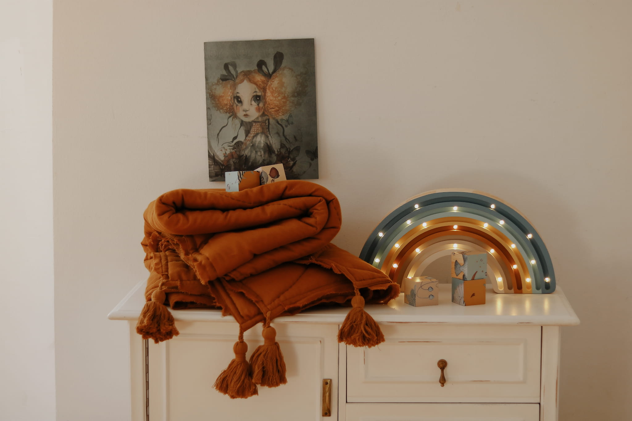Little Lights wooden lamp in the shape of a rainbow. This wooden lamp will not only illuminate the room, but will also be an interesting room decor. This Little Lights wooden lamp has a dimmer, so you can adjust the light intensity.