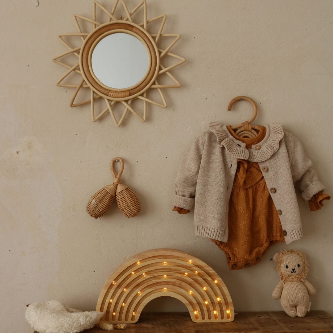 Little Lights led lamp in the shape of a rainbow. This wooden lamp will not only illuminate the room, but will also be an interesting room decor. This Little Lights wooden lamp has a dimmer, so you can adjust the light intensity.