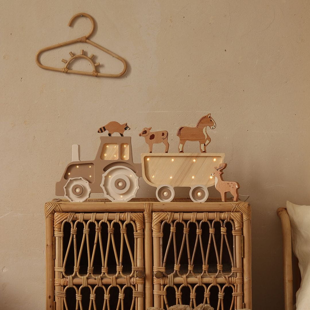 Tractor lamp for fans of farmland :) This wooden lamp will not only illuminate the room, but will also be an interesting room decor. This Little Lights wooden lamp has a dimmer, so you can adjust the light intensity.