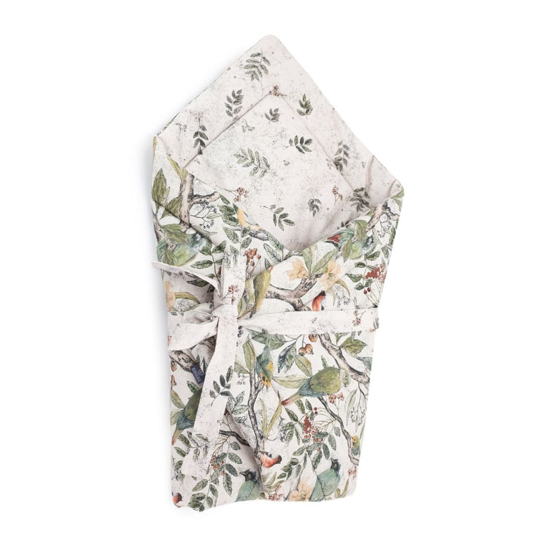 The swaddle is made of the highest quality cotton on both sides in carefully selected colors and patterns. The inside is filled with anti-allergic, light, silicone fleece to keep you warm. The filling is slightly stiffened.