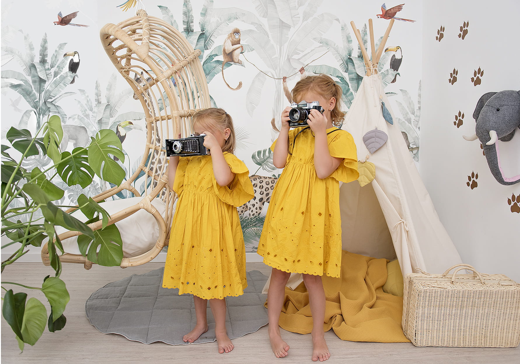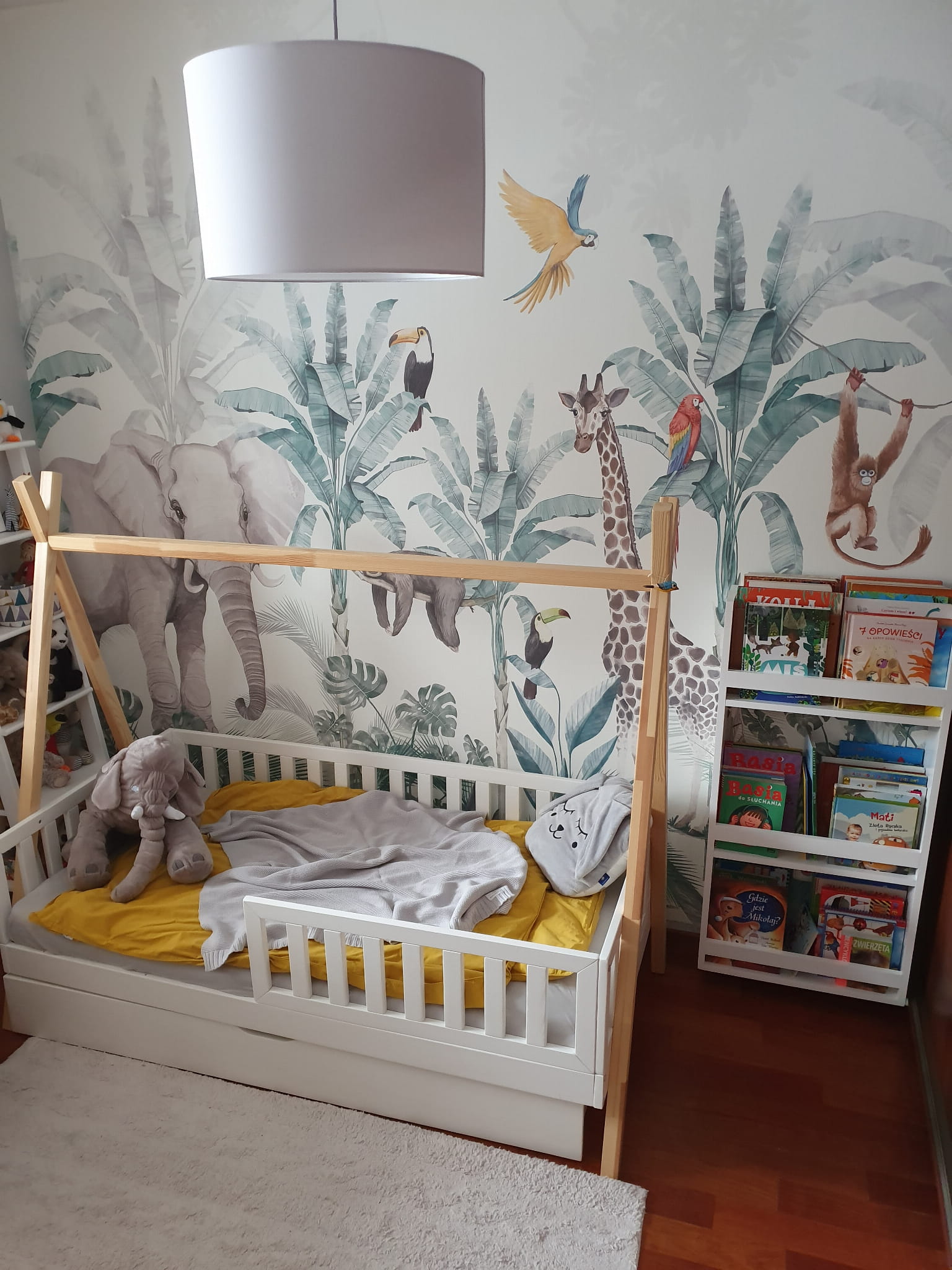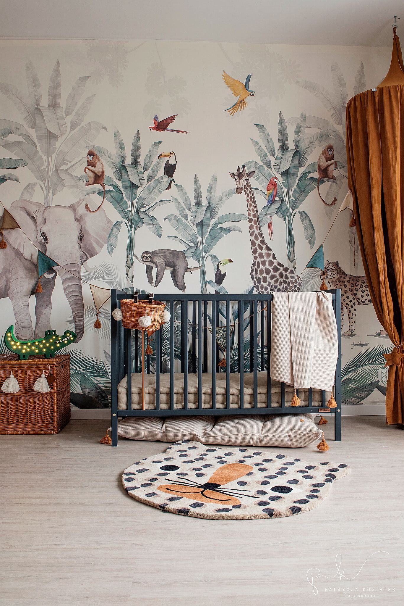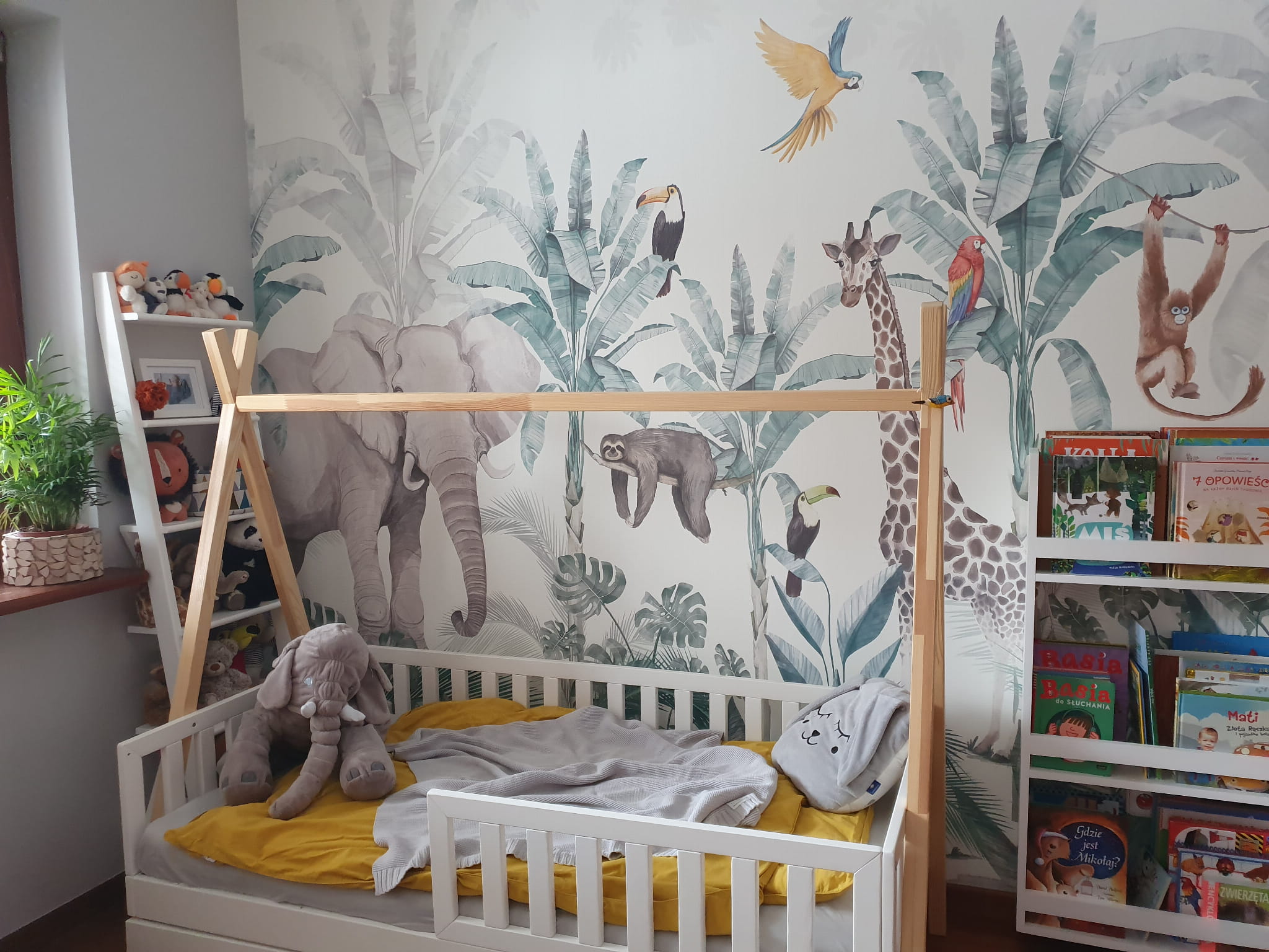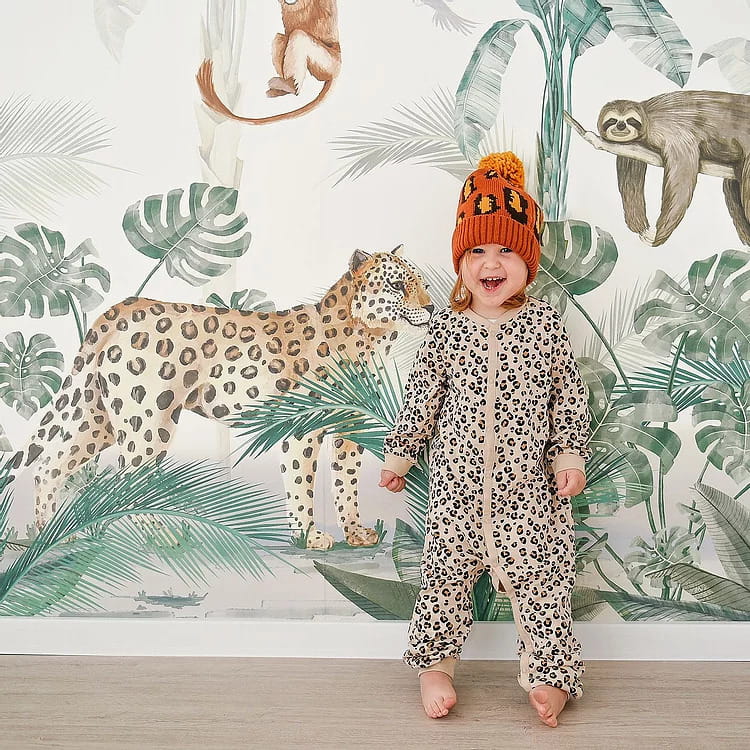 The safari wallpaper will stimulate the child's imagination and give the interior a unique character. It is a perfect scenery for an active child's room. If you plan to install a child in a monkey grove room, a ladder, a rope or a swing, the Jungle children's wallpaper will emphasize the atmosphere and encourage to play. Your child will have a chance to play straight from the The Jungle Book, Jumanji and other stories that take place in wild and exotic areas.