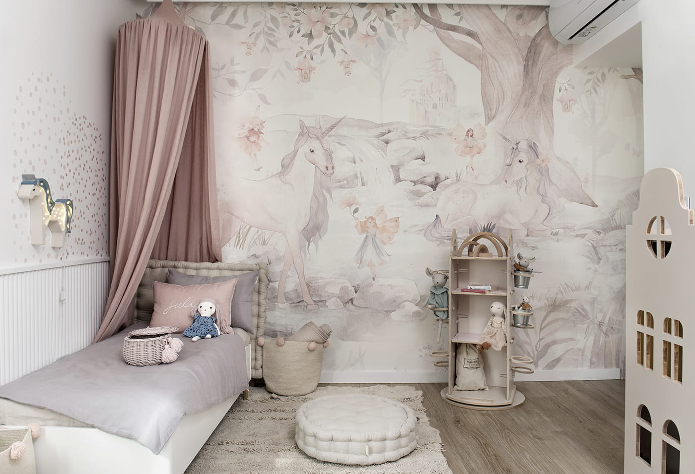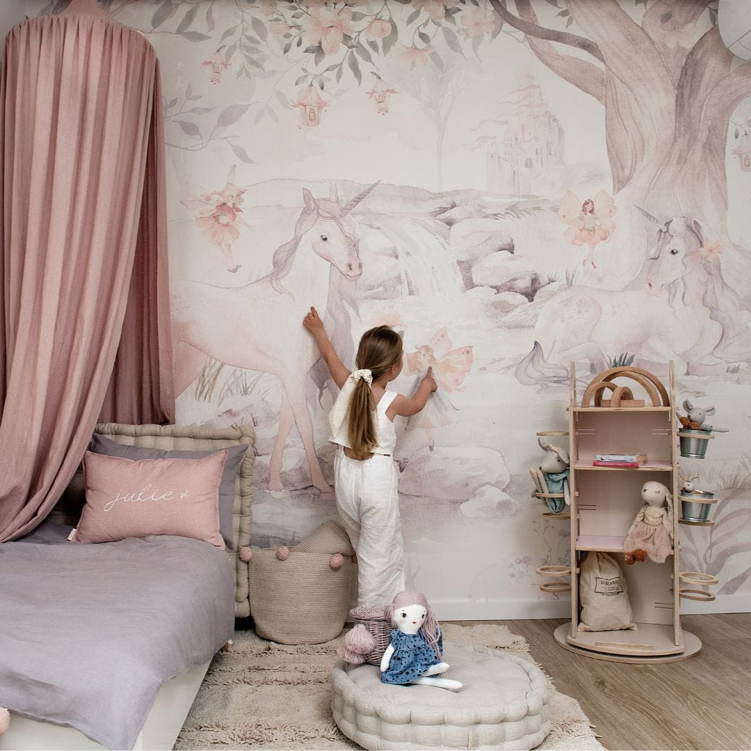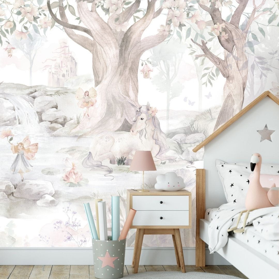 You care for your little baby that loves unicorns, fairies, animals and flowers ... How nice to bring all these children's games inside! In a child's room, together with the wallpaper with unicorn, the space becomes cozy, filled with soothing fashionable colors, allowing for the development of colorful children's fantasies.