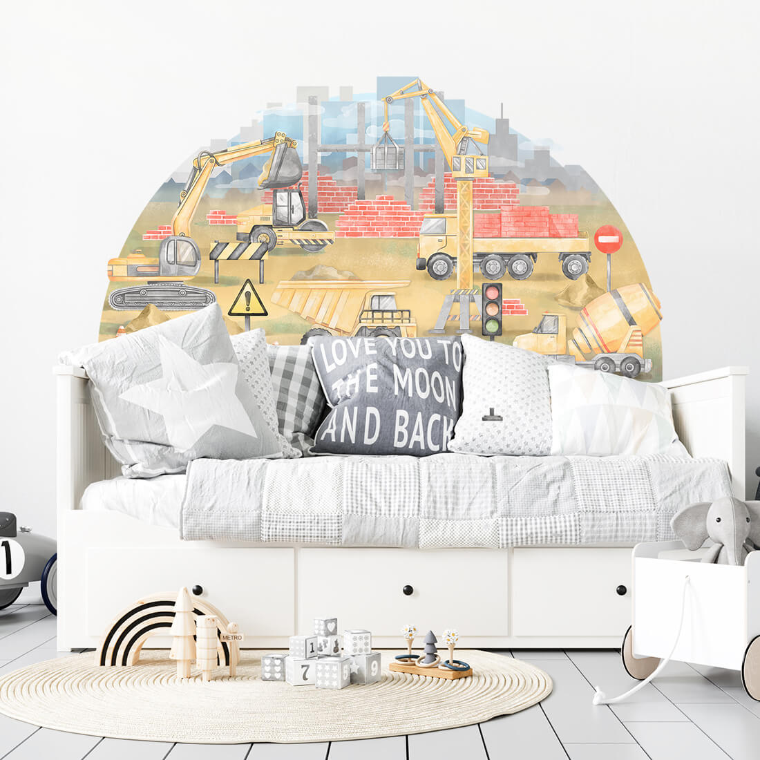 Construction wall sticker, thanks to its large surface, is perfect to stick behind the bed or in the children's corner. It is a beautiful decoration at the same time protecting the wall from dirt or damage.