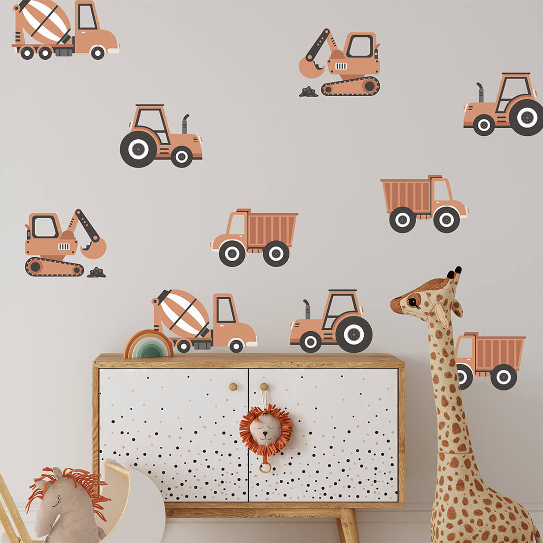 Turn your child's room into a real construction site thanks to a series of stickers with construction vehicles.